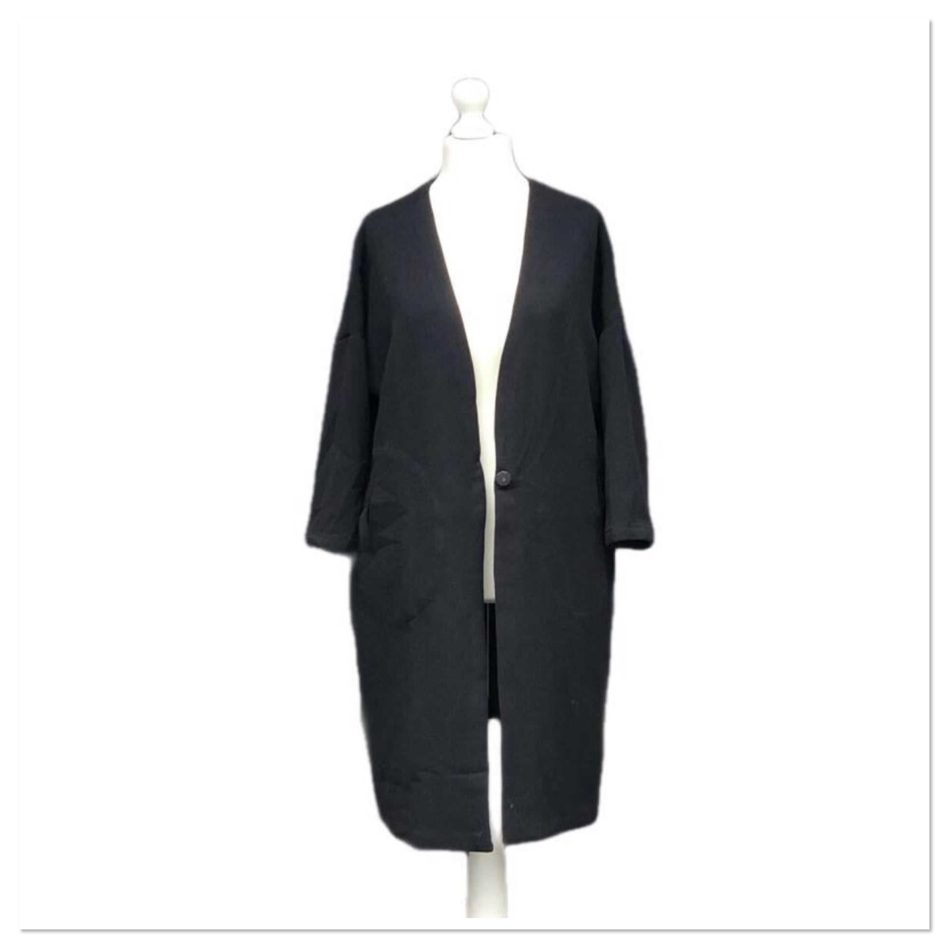 A longline jacket, blazer style with button fastening.